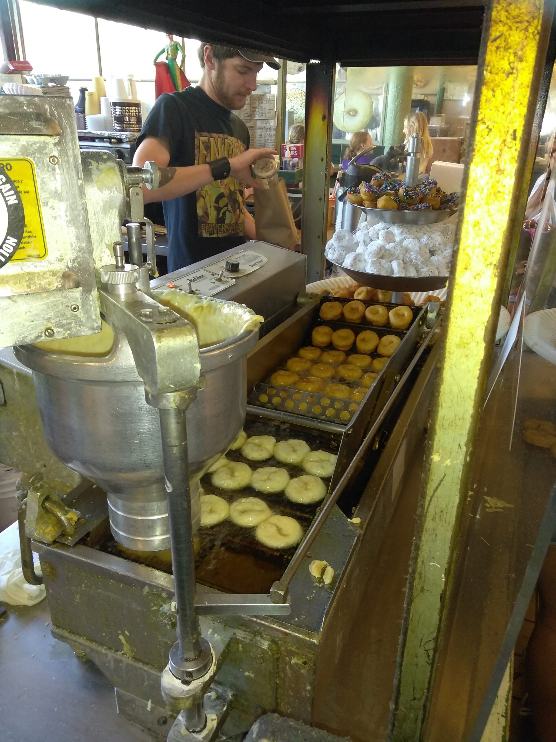 Pike Place Fish Market – Famous for fish throwing! Yes, we saw them throw the fish, but none of us bought one to take home and cook. We just went for the entertainment. If you get lucky enough, a worker may just make one of the frozen fish come to life (by pulling on the tail) and scare your child like they did to Aiden while we were there. They really do know how to put on a show!The Daily Dozen Doughnut Company was right around the corner, but so was the line! Definitely worth the wait though and the fresh, melt-in-your-mouth donuts will warm the heart of any fish-frightened child.